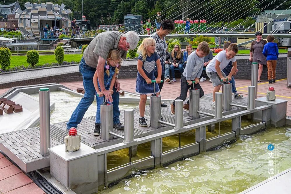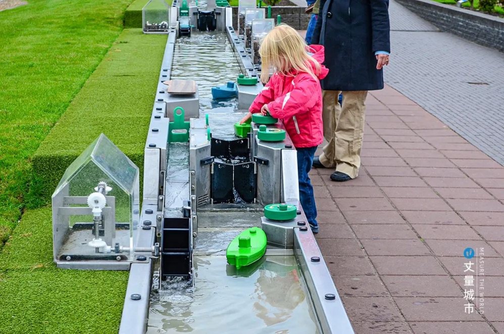 悉尼達令港則選擇打造一系列身邊的水體驗空間,通過玩水閘的游戲,體驗水的「變化性」。——關閉閘門,可以攔水、蓄水抬高上游水位;開啟閘門,可以排水、沖沙、取水,或根據下游用水的需要調節流量。市民們在玩耍中體會到了水工技術的樂趣與科學精神。